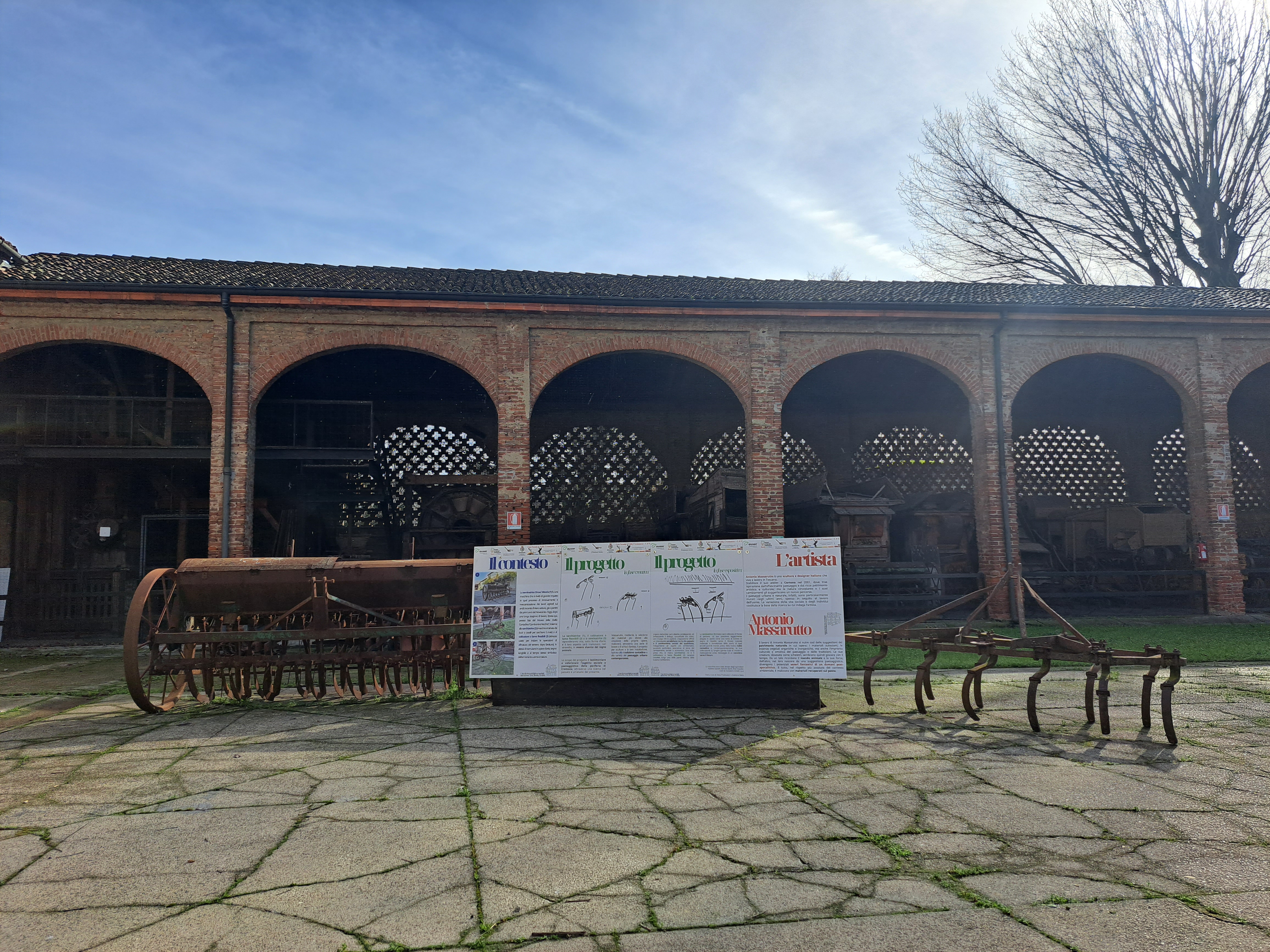 Le tre macchine, selezionate dall’artista Antonio Massarutto per realizzare le opere previste dal progetto, sono presso l’aia del Museo della Civiltà Contadina “Cambonino Vecchio” di Cremona.